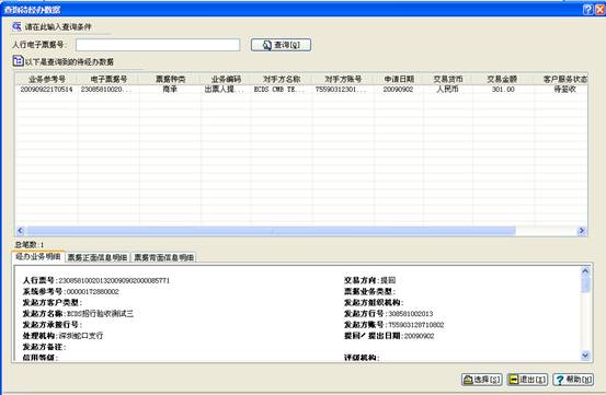 选择单张票据即可查看“经办业务明细”、“票据正面信息明细”和“票据背面信息明细”