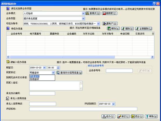 承兑人可以在“回复标记”选择对提示承兑“同意签收”或“拒绝签收”。