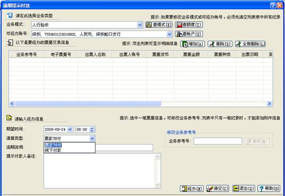 1、持票人发出逾期提示付款申请的业务处理